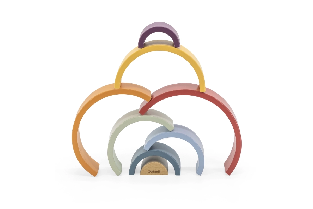 PolarB puidust vikerkaar on disainklotsikomplekt, mis kasvab koos lapsega. Seitse värvilist kaart ja sisemine detail logoga võimaldavad ehitada vikerkaari, sildu, aedikuid, autoteid või tasakaalutorne. Mäng arendab loomulikult kujutlusvõimet, kannatlikkust ja ruumilist mõtlemist.