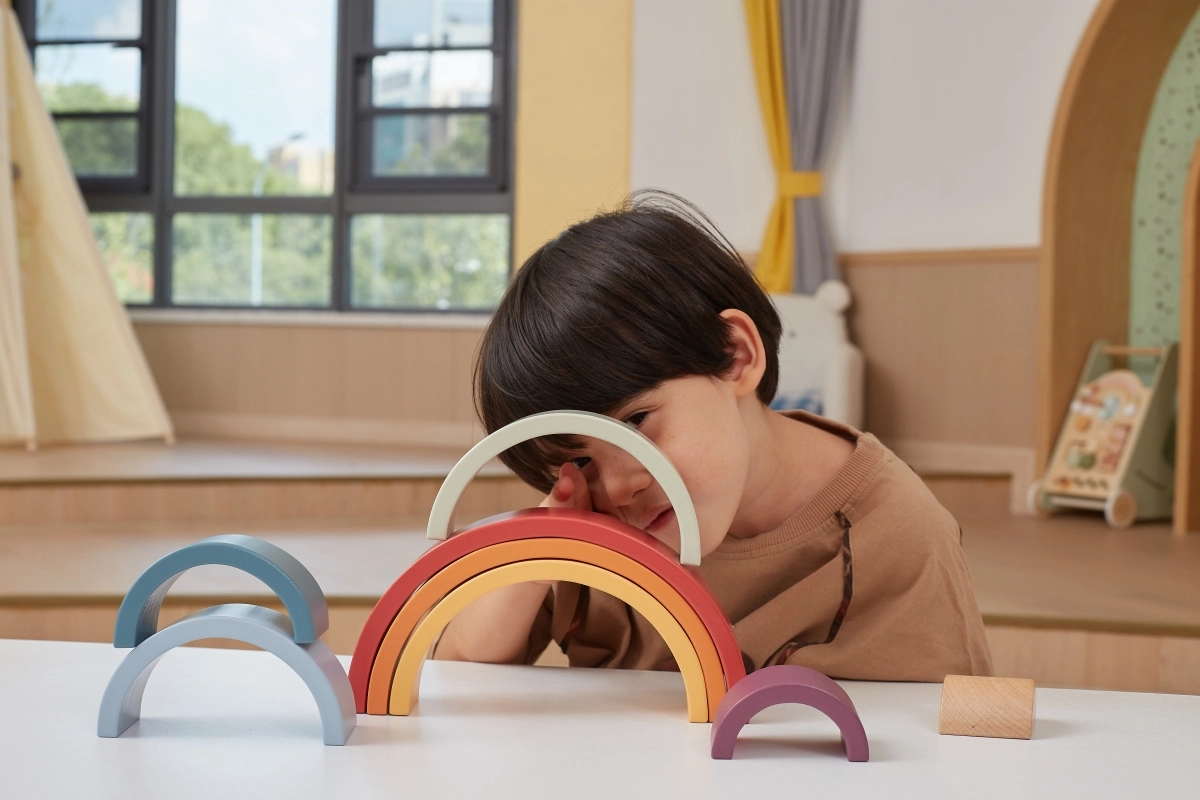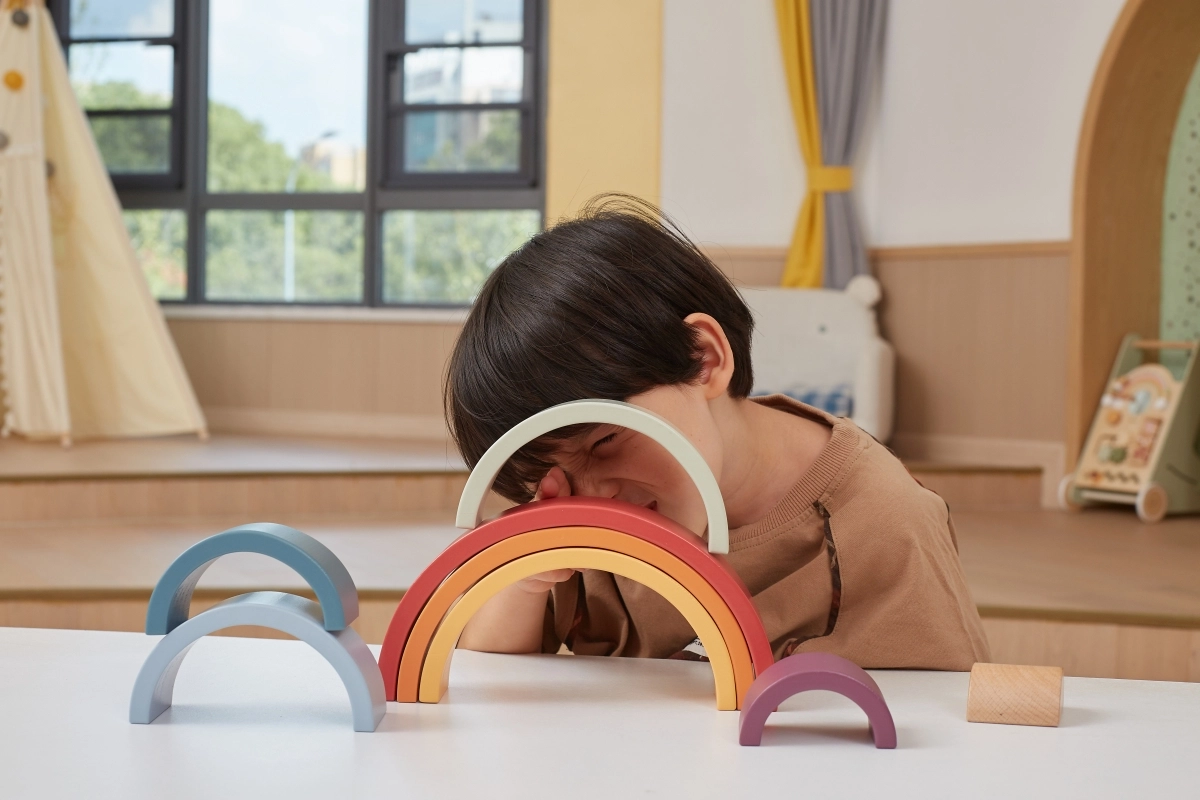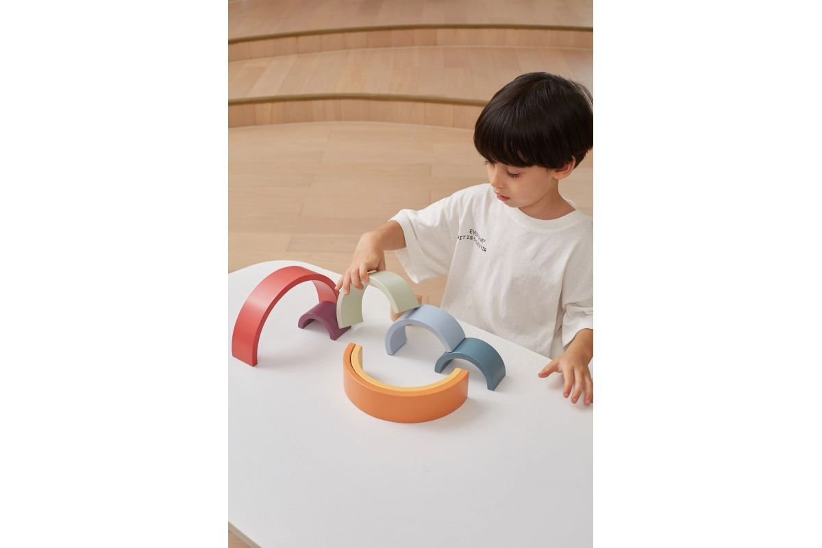 Ohutu teostus ilma teravate servadeta ning vastupidav, hoolikalt lihvitud puit tagab mõnusa haarde ja pika kasutusea. Mittetoksilised värvid on sõbralikud nii lastele kui ka loodusele. Vikerkaar on suurepärane abivahend Montessori lähenemises ning samas stiilne kaunistus lastetuppa.