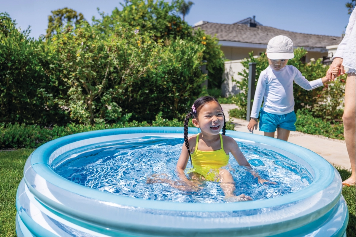 Kolm täispuhutavat rõngast moodustavad stabiilsed seinad pehme ülaservaga, mis on õrn laste küünarnukkidele ja põlvedele.
