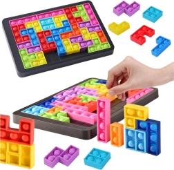 See 3-ühes sensoorne pusle kvaliteetsest mittetoksilisest silikoonist rõõmustab nii lapsi kui täiskasvanuid. Mullide vajutamisel kostub õrn, rahustav heli ja teisel poolel saab jätkata – ideaalne stressi leevendamiseks ja keskendunud mänguks. Tetrise stiilis tükke paigutad alusele ja lood erinevaid mustreid, treenides loomulikult silma-käe koordineerimist ja ruumilist mõtlemist.