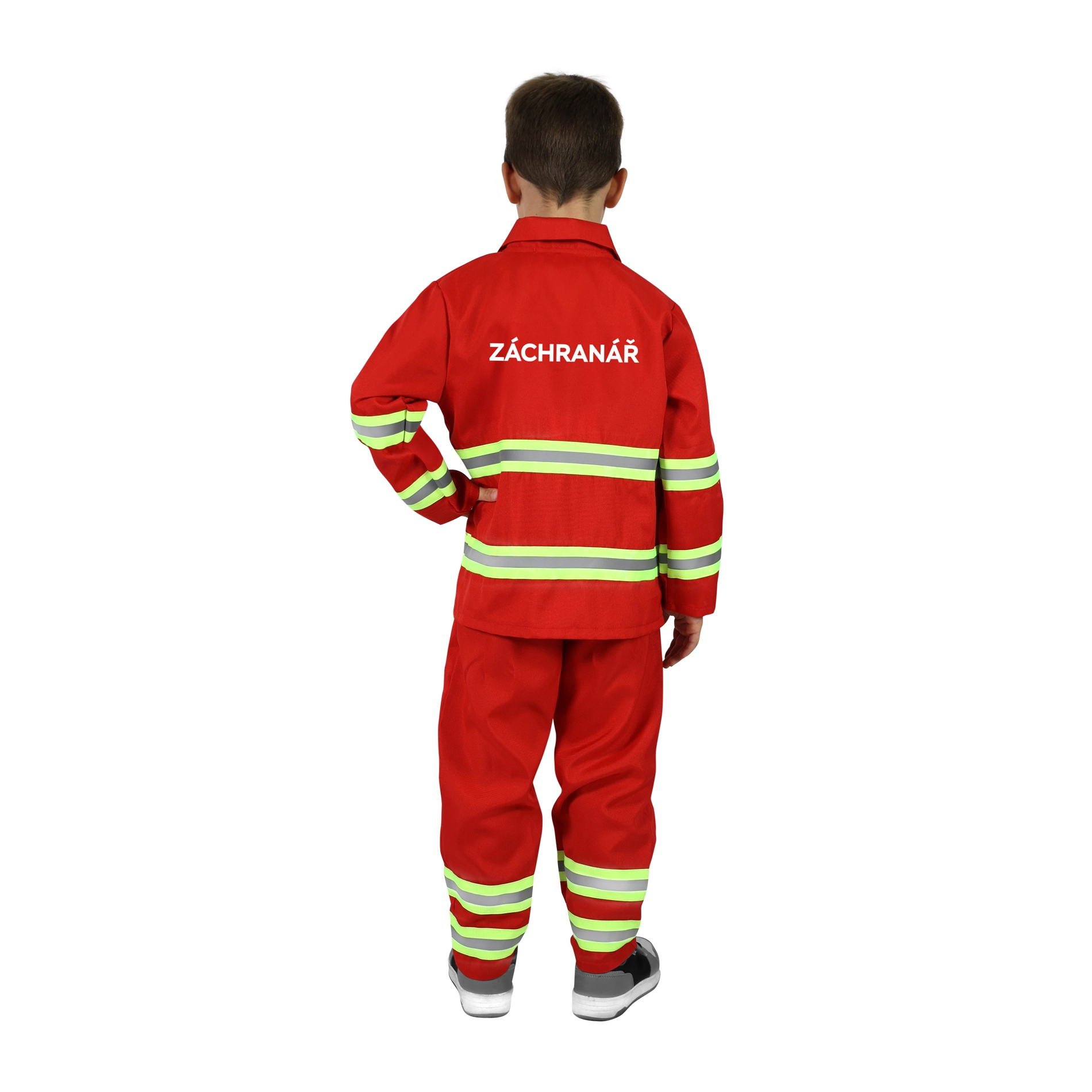 Laste päästja kostüüm tšehhikeelse trükiga muudab iga lapse silmapilkselt vapraks abistajaks. Helkurelemendid lisavad realistlikkust ja parandavad nähtavust, nii et väikesed päästjad tunnevad end nagu päris professionaalid.