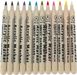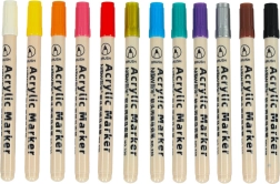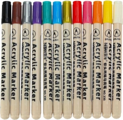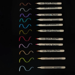 Avasta loovus selle 12 akrüülmarkeri komplektiga nii lastele kui täiskasvanutele. Sobib kangale, klaasile, kivile, puidule ja metallile. Pakuvad intensiivseid värve, täpset joont ning on veekindlad ja kiiresti kuivavad. Turvaline veepõhine koostis, lõhnatu ja mittetoksiline – ideaalne DIY-projektideks ja kooliloominguks.