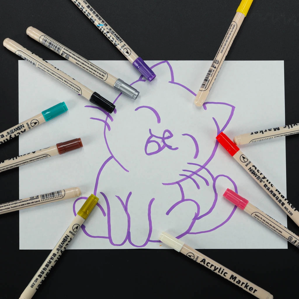 Akrüülmarkerite komplekt avab nii lastele kui täiskasvanutele piiramatute ideede maailma. Tänu kõrgele pigmentatsioonile loovad need sügavad ja katvad värvid erinevatel pindadel – alates kivikestest ja tassidest kuni T-särkide ja kottideni. Peen täppisots hõlbustab detailset joonistamist, kontuure ja kirjapildistamist.