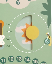 See värviline ja selge puidust kalender aitab lastel kergesti mõista aja põhitõdesid ning tutvuda ingliskeelsete sõnadega. Sobib suurepäraselt nii koduseks õppeks kui ka lasteaeda: