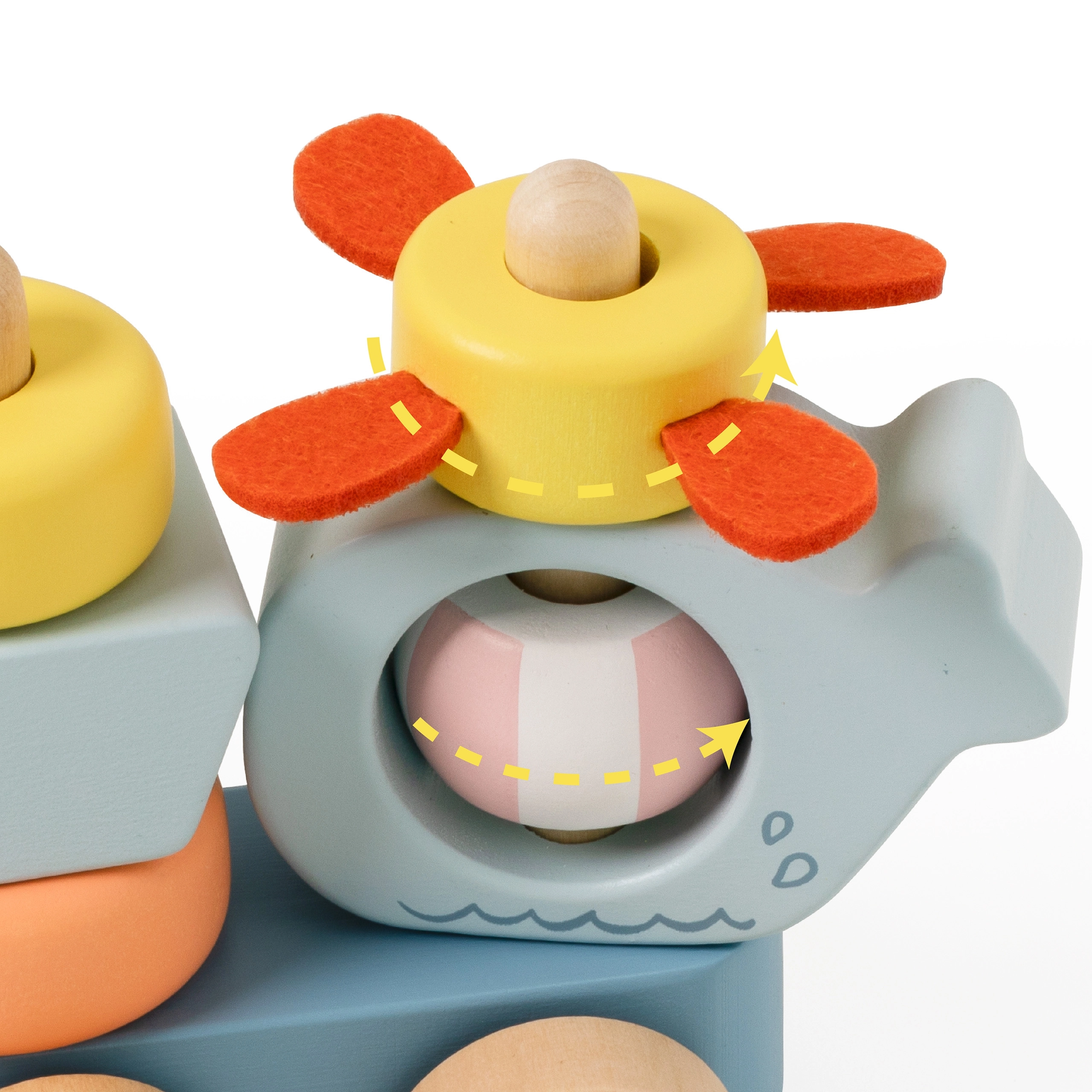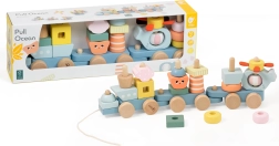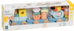 Avastage ookeani võlu armsa rongiga, mis on valmistatud kvaliteetsest puidust ja millel on siledaks lihvitud servad turvaliseks mänguks. Ocean Pull komplektis on laevad, majakas, helikopter ja mereloomad – kõik vabaks ladumiseks ning kujundite ja värvide avastamiseks.
