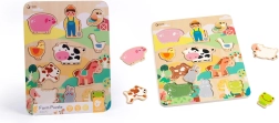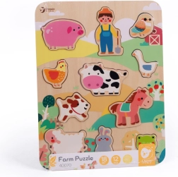 Tänu vastupidavale puidust ehitusele ja siledatele servadele on pusle turvaline ja meeldiv puudutada. 12 tükki pakub parajat väljakutset mudilastele ja toob palju korduvat mängurõõmu. Värviline alus maalilise talupildiga kutsub mängima ning arendab fantaasiat ja sõnavara.