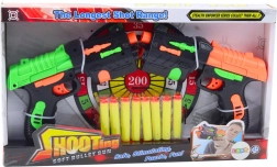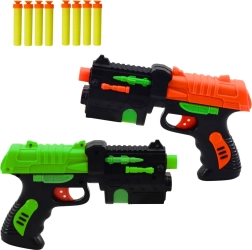 Avasta topeltkogus lõbu kahe iminappadega vahunooltepüstoli komplektiga. Ergonomilised käepidemed, kompaktsed mõõtmed ja lihtne käsitsi mehhanism tagavad mugava ja ohutu kasutuse. Värvikas, dünaamiline disain rõõmustab nii väikeseid kui suuremaid laskureid ja toetab nende motoorseid oskusi.