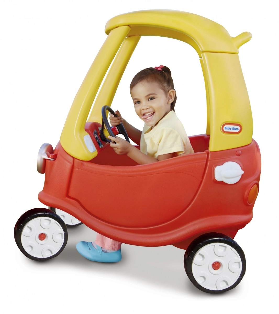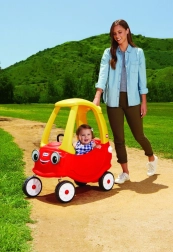 Lapsed võivad Cozy Coupe’i liigutada oma jalgadega või lasta end mugava sangaga tõugata. Eemaldatav põrand annab väiksematele sõitjatele kindlustunnet ning vanematele täieliku kontrolli sõidu üle.