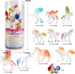 See võluv ükssarvikute figuurikomplekt kaubamärgilt WOOPIE pakub lastele tunde mängurõõmu ja fantaasiat. Erinevates poosides figuurid, kirgaste lakkade, sabade ja tiibadega kutsuvad looma oma lugusid, samas kui “pärlid/ kalliskivid” lisavad mängule sära. Tänu kvaliteetsele teostusele sobivad need suurepäraselt nii iseseisvaks mänguks kui ka lastetoa kaunistuseks.
