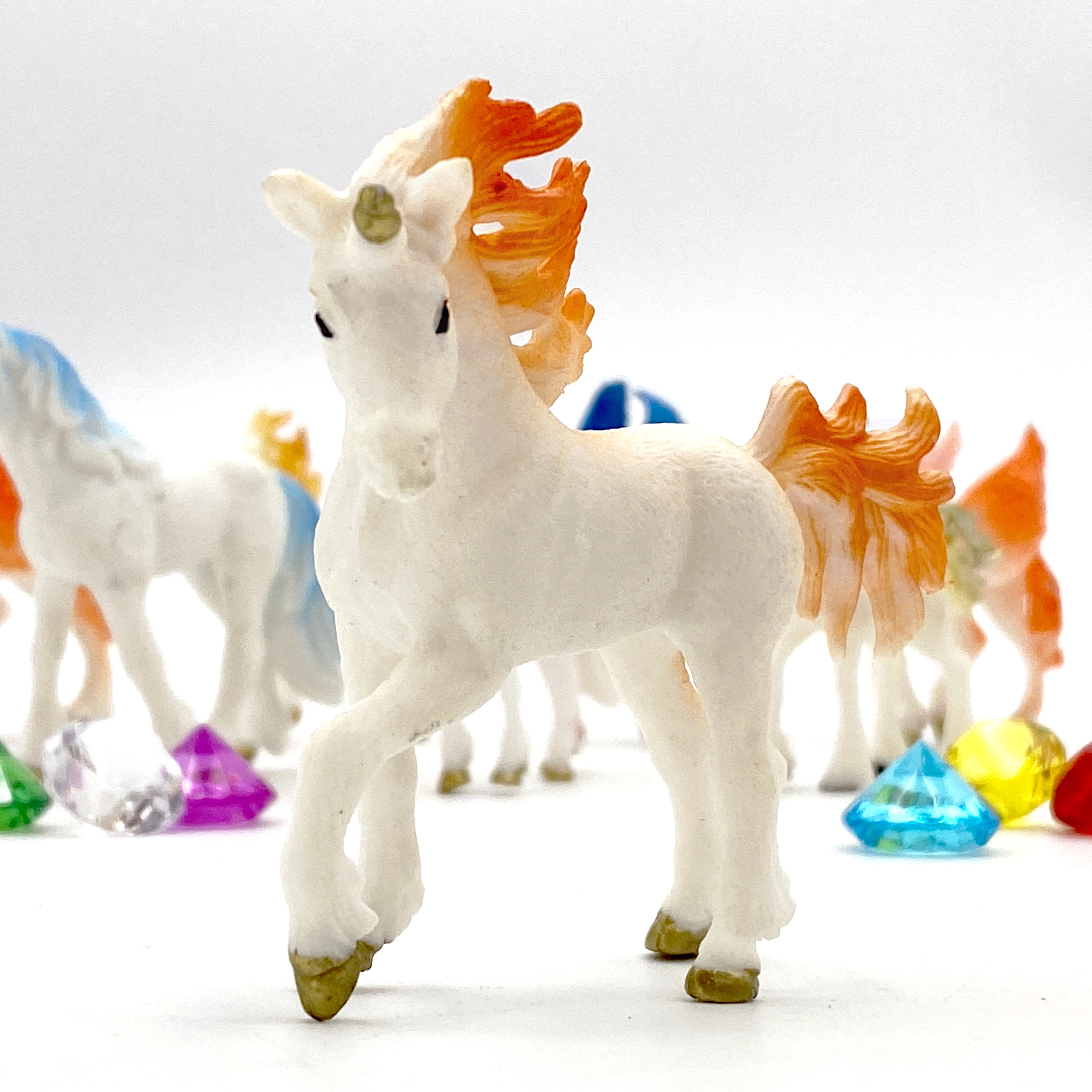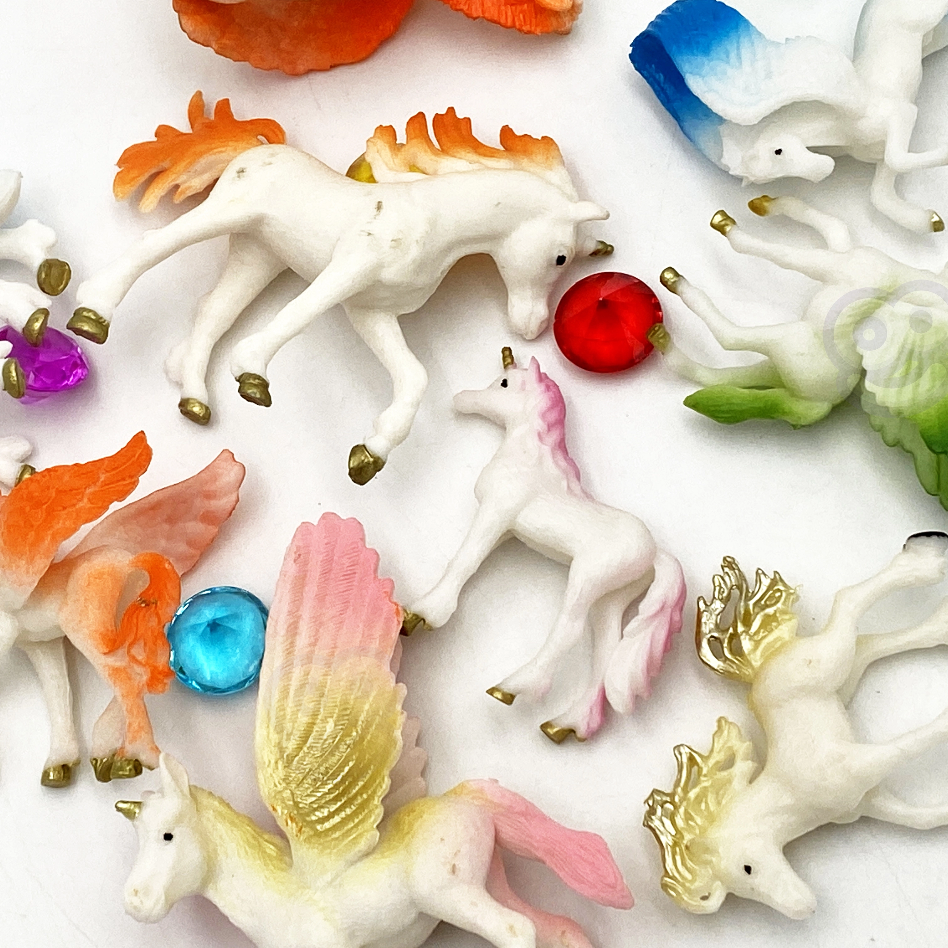 Kümme ükssarvikut erinevates poosides ja värvides koos kuue “teemantiga” innustavad lapsi välja mõtlema lugusid ja arendavad kujutlusvõimet.