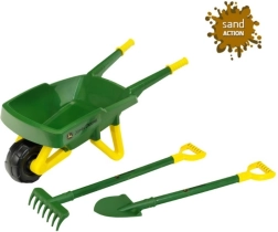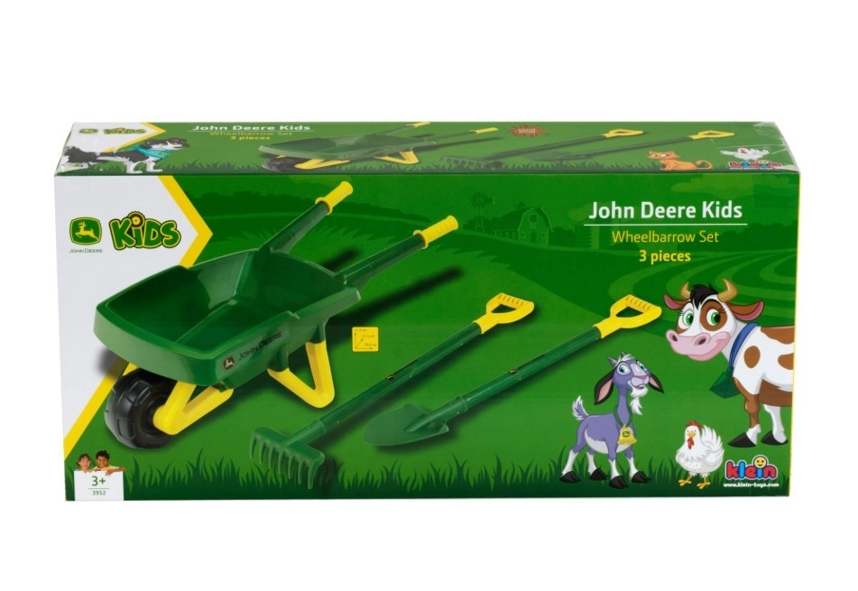 See kvaliteetne komplekt JOHN DEERE ikoonilistes värvides sobib suurepäraselt lastele, kes armastavad aias aidata. Vastupidav käru mugava käepidemega ning kerge labidas ja rehad on loodud laste kätele, tagades turvalise ja lõbusa kasutuse mulla, liiva, lehtede või rohu teisaldamisel.