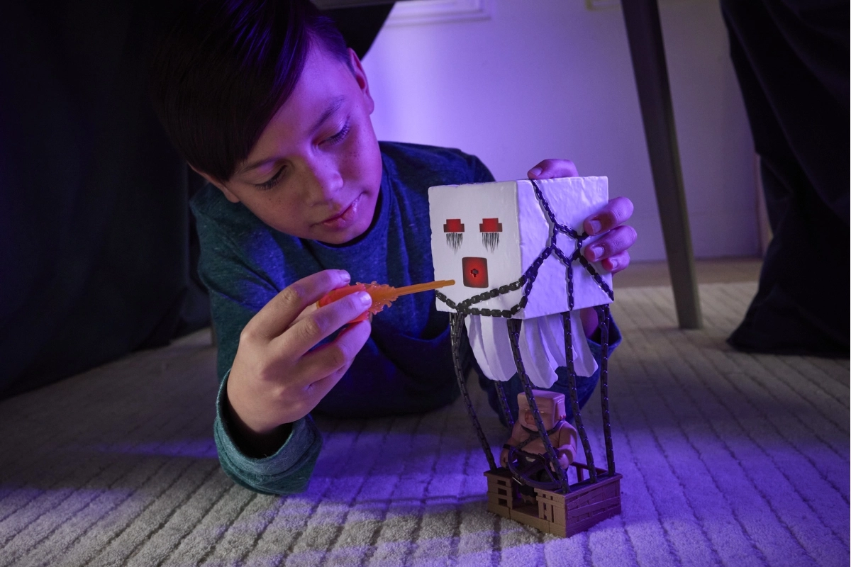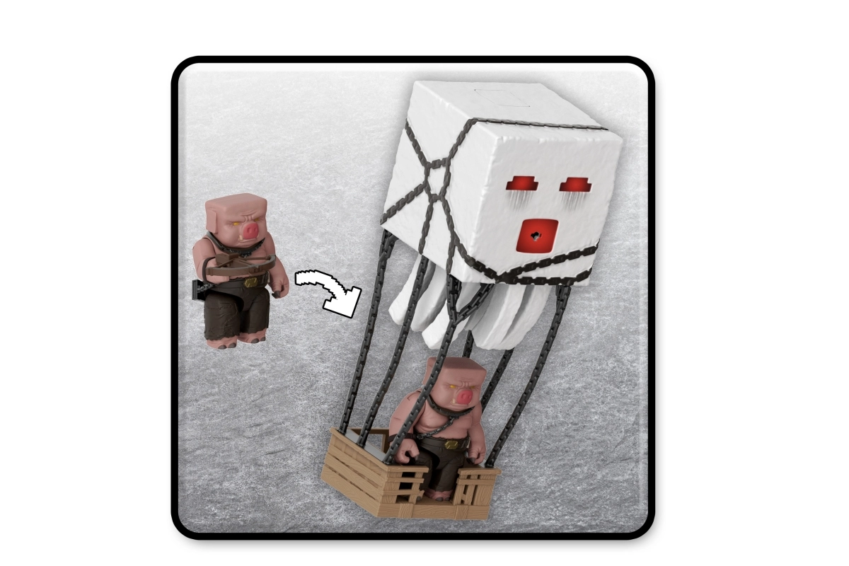 Sukeldu MINECRAFTi filmi maailma Ghasti action-figuuriga, mis toob sinuni valgusefektid, lahinguhääled ja tulistatava kuuli. Komplektis on ka seakoll sõdalase figuur, et taasluua eepilisi stseene ja põnevaid lahinguid kodus.