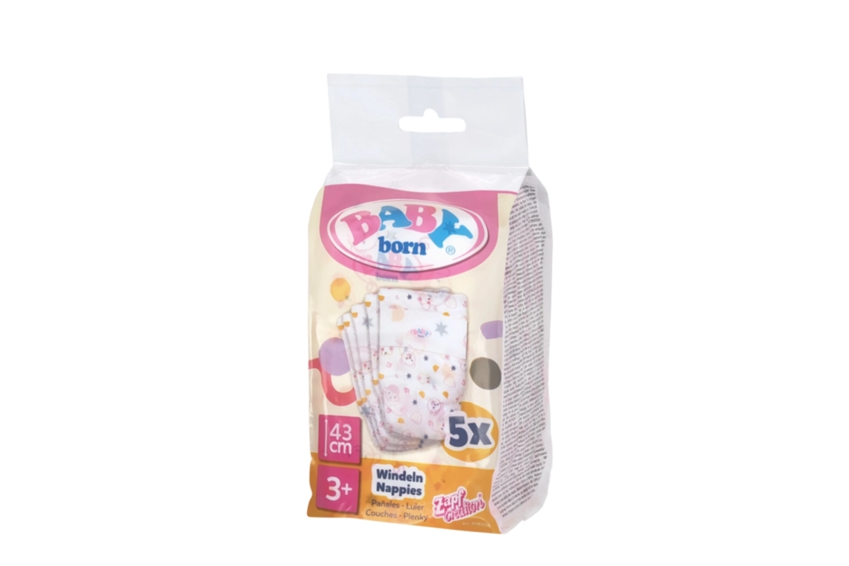 Pakkuge lastele veelgi autentsemat mänguelamust BABY born nukkude mähkmetega. Tänu pehmele materjalile ja elastsetele äärtele istuvad need hästi 43 cm nukkudel ning lihtsustavad kõiki hooldusstsenaariume – mähkimisest kuni potitreeninguni.