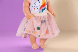 Outfit sobib 43 cm nukkudele ja ka BABY born Teddy’le. Tänu kvaliteetsele teostusele on see ideaalne fantaasiaküllaseks, mitmekülgseks ja kauakestvaks mänguks. Komplektis on ka riidepuu, mis on valmistatud taaskasutatud materjalist, aidates kleidikese kenasti korras hoida.