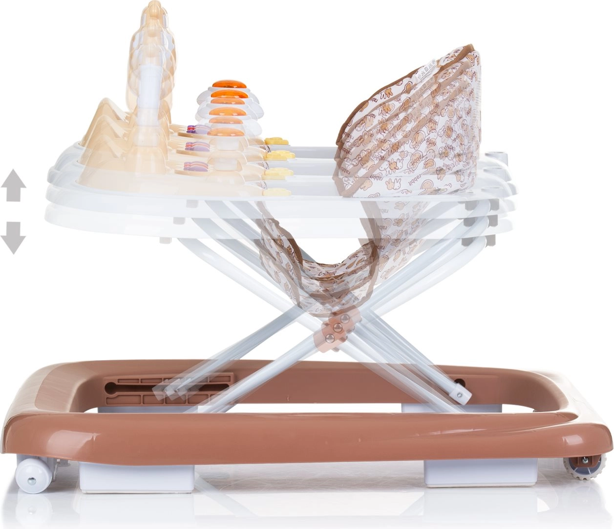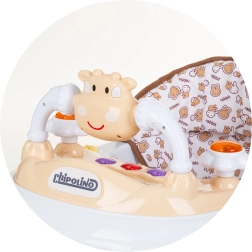 Interaktiivne käimistool CHIPOLINO Little Cow Mocca on ideaalne kuni 12 kg kaaluvatele lastele, kes juba iseseisvalt istuvad. See pakub laia alust stabiilsuseks, 3 istme kõrguse asendit, 360° pöörduvaid esirattaid ja interaktiivset pulti nägemis- ja kuulmismeele arendamiseks. Tänu 6 turvapidurile kaitseb see ümberminemise ja trepist kukkumise eest.