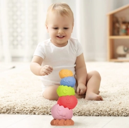Pastelsed osad on lihtsasti haaratavad ja püsivad stabiilselt kõrges tornis. Lapsed harjutavad iga püramiidi ehitusega silma–käe koordineerimist ja kannatlikkust.