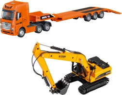 Veoki madelveotreileri ja ekskavaatoriga mudel on täpne koopia veokist, mis on mõeldud raske ehitustehnika veoks. Kvaliteetsest metallist ja vastupidavast ABS-plastist valmistatud mudel ühendab tugeva konstruktsiooni, vastupidavuse ja täpsuse.