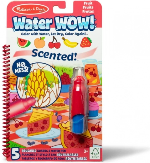 Lõhnavad vesivärviraamatud Water WOW! pakuvad lastele loovat tegevust ilma värvide ja plekideta. Niisutamisel muutuvad puuviljapildid kohe värviliseks ja kuivades kaovad taas, et saaks neid ikka ja jälle kasutada. Kompaktne spiraalköites plokk koos veega täidetava pliiatsiga on suurepärane kaaslane reisidel.