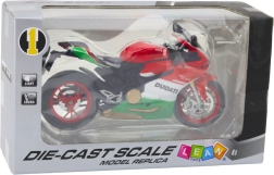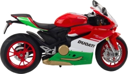 Täpselt viimistletud metallist sportmootorratta mudel on ideaalne valik kollektsionääridele, motospordi fännidele ja lastele, kes armastavad dünaamilisi sõidukeid. Liikuvate lenksude, vedrustuse ja pöörlevate ratastega pakub see mudel ehtsat sõidu- ja manööverdamistunnet. Selle punavalgerohelise disainiga, mis on inspireeritud Itaalia võidusõidumootorratastest, sobib see nii mänguasjaks kui ka stiilseks dekoratsiooniks.