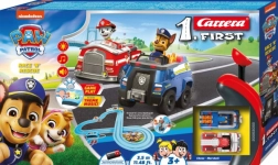 Võidusõidulõbu kõige pisematele! CARRERA FIRST võidusõidurada ametliku Paw Patroli litsentsiga pakub 3,5 m pikkust rada koos interaktiivsete tulede ja helidega, kahe autoga (Chase ja Marshall) ning kiirusekontrolleritega. Tänu lihtsale kokkupanekule, magnetitele ja kontaktharjadele püsivad autod rajal suurepäraselt. Ideaalne patareitoitel võidusõidurada lastele alates 3. eluaastast.