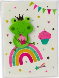 Kaart on valmistatud kvaliteetsest paberist, mis tagab vastupidavuse ja elegantse välimuse. 3D-disain tõstab selle atraktiivsust ning värvilised, lõbusad motiivid rõõmustavad iga kingisaajat.
