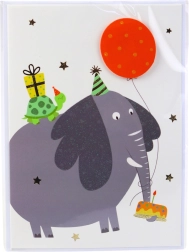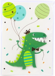 Lõbusad ükssarviku, dinosauruse, elevandi ja konna motiivid annavad kaardile mängulise ja rõõmsa ilme.