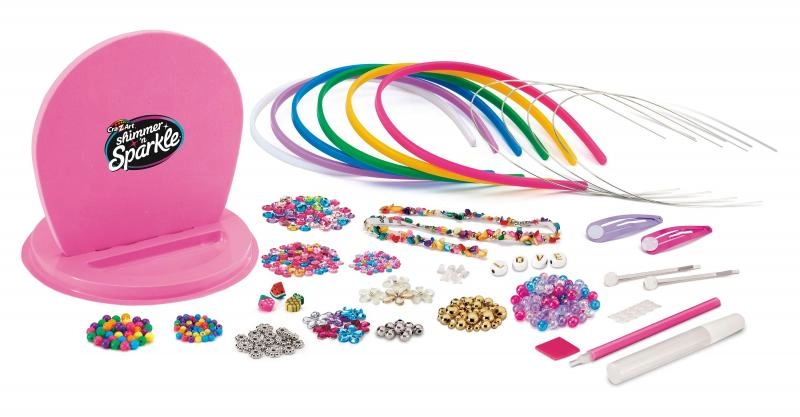 Shimmer 'n Sparkle pakub loovkomplekti lastele, mis võimaldab luua säravaid peapaelu ja juuksekaunistusi. Komplekt, mis toetab laste loovust ja peenmotoorikat, sisaldab kõike, mida on vaja stiilsete aksessuaaride valmistamiseks.