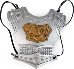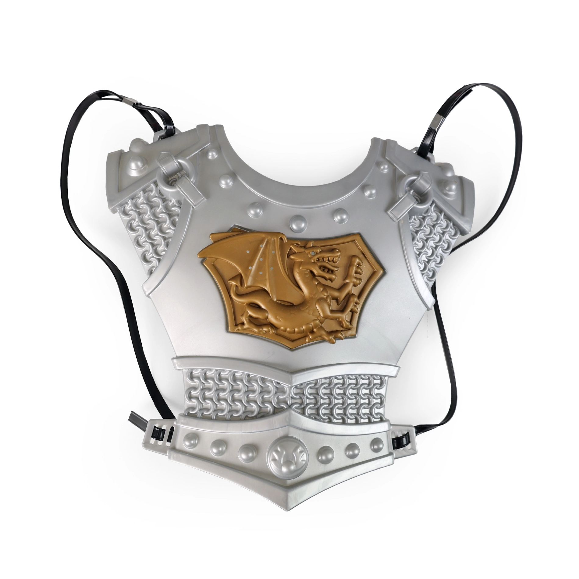 Detailne kilp ja soomus kuldse draakoni embleemiga annavad kostüümile muljetavaldava ilme ja rõhutavad rüütliliku iseloomu.