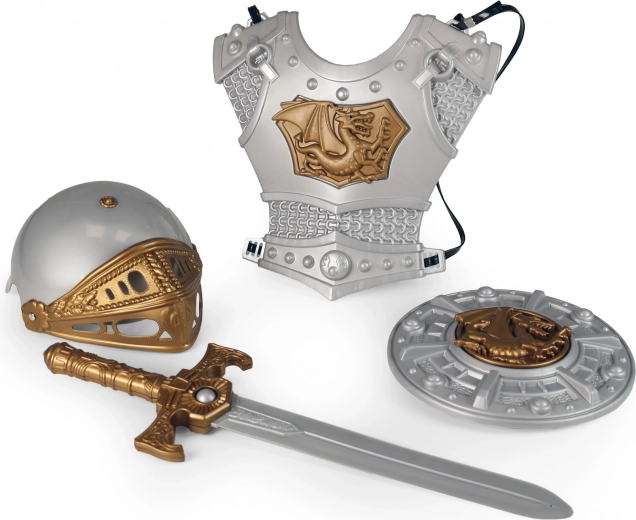 Kiiver, soomus, mõõk ja kilp moodustavad tervikliku komplekti, millega on laps valmis igaks seikluseks – karnevalist kuni koduste lahinguteni.