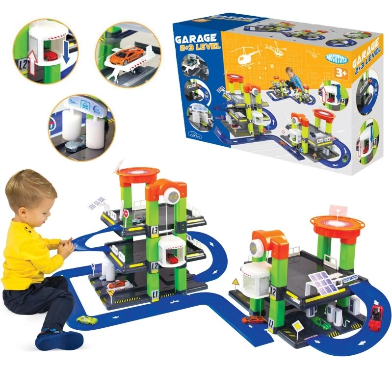 Nauti tundide kaupa mängurõõmu selle võimsa kolmekorruselise mega-garaažiga, kuhu kuuluvad kaasaegsed kahekorruseline ja kolmekorruseline parkla. Lapsed saavad liftiga autosid eri korrustele tõsta ja need oma soovi järgi parkida.