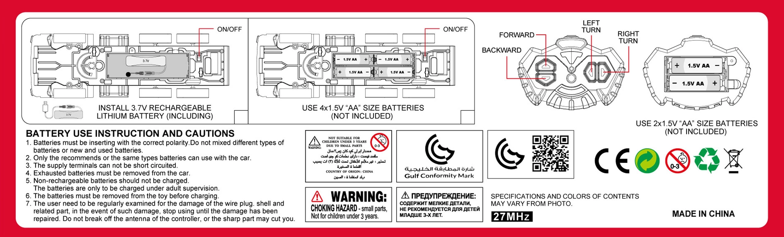 - Kaugjuhtimine – komplektis on pult sõiduki täielikuks juhtimiseks (edasi, tagasi, vasakule, paremale).