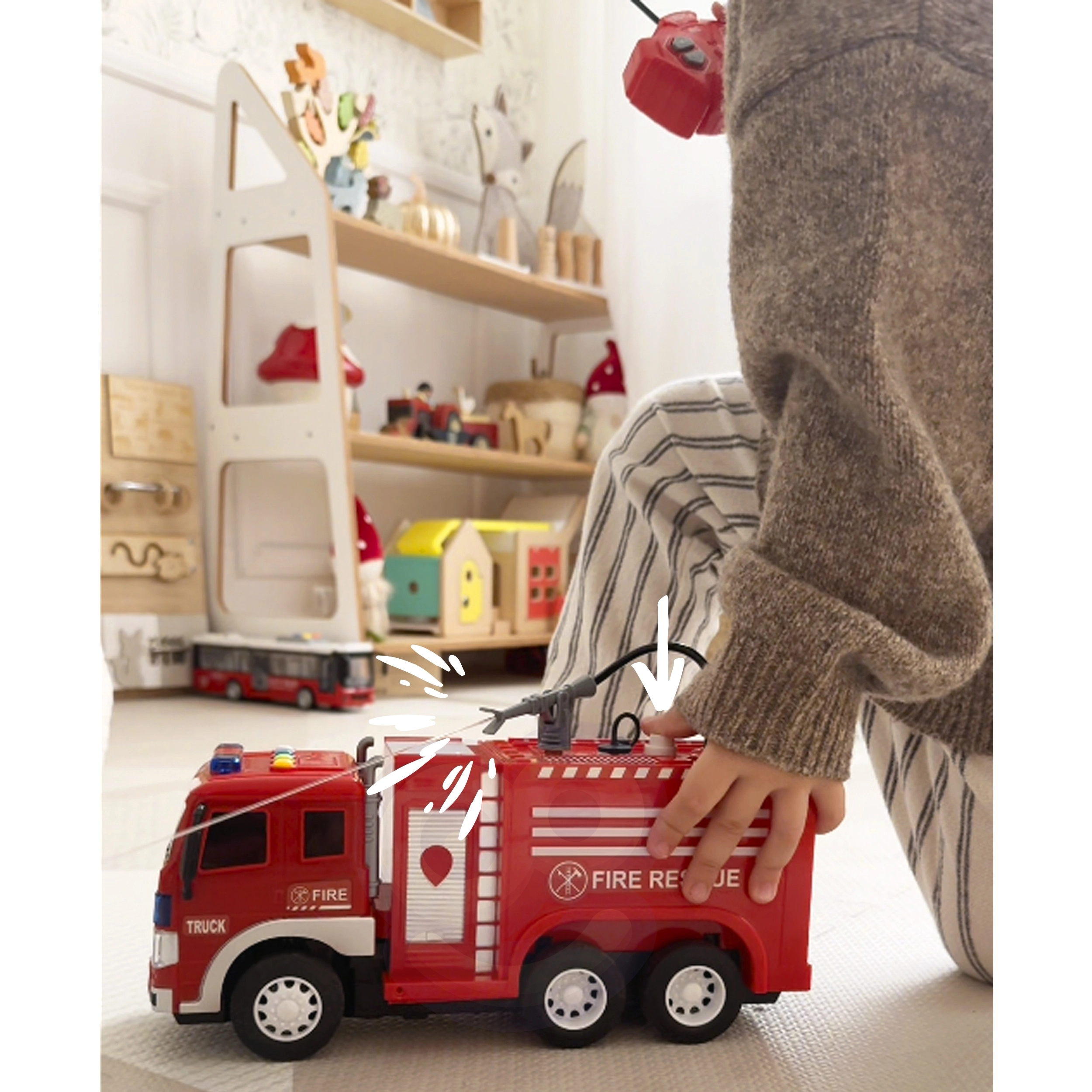 WOOPIE kaugjuhitav tuletõrjeauto annab lastele võimaluse astuda vapra tuletõrjuja rolli. Realistlike funktsioonide abil saavad nad kogeda, kuidas tuletõrjeautod töötavad ja milline on tuletõrjuja töö. Veepihustuse funktsioon muudab mängu veelgi põnevamaks.