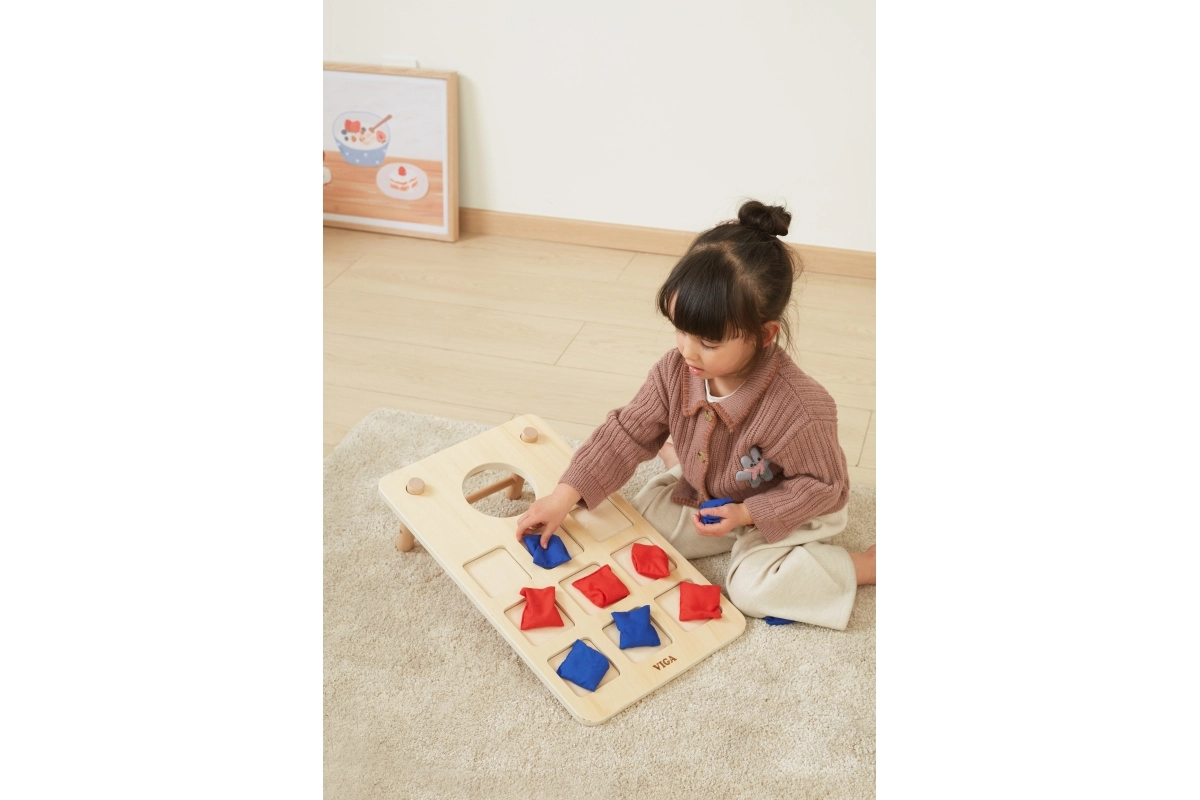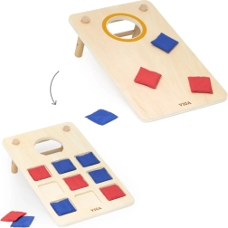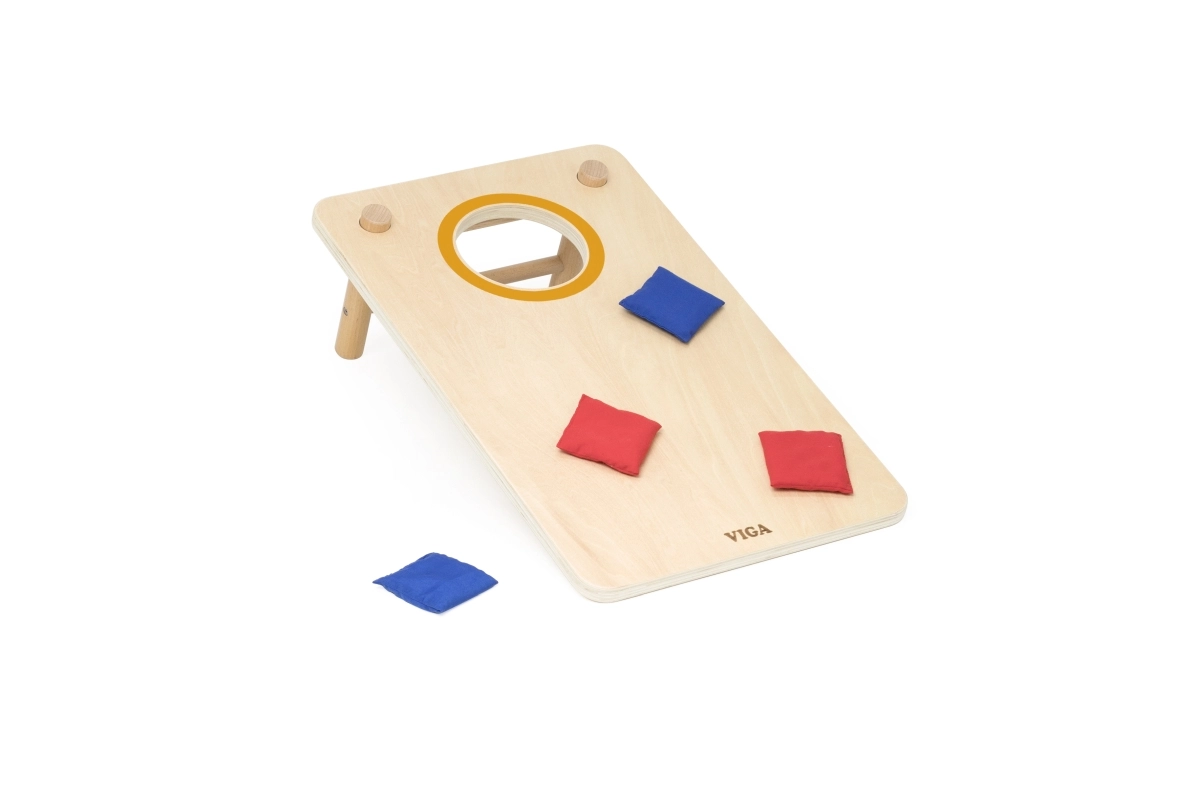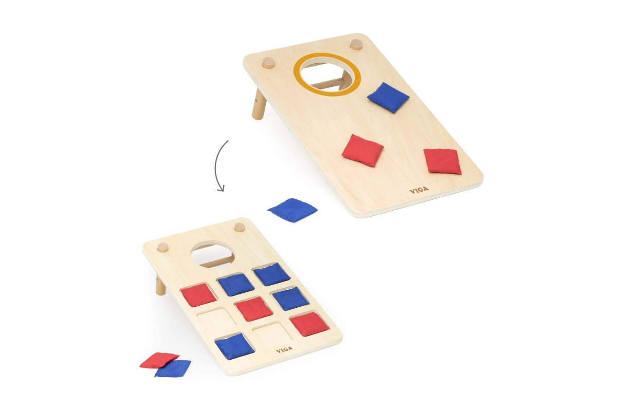 Lõbus VIGA 2‑ühes puidust viskemäng ühendab klassikalise cornhole’i ja trips-traps-trulli. Tugev puidust teostus, kaldega jalad ja punased ning sinised kangast kotikesed pakuvad perega koosmängimise rõõmu, arendavad silma-käe koordinatsiooni, treenivad visketäpsust ning toetavad strateegilist mõtlemist trips-traps-trulli mängides.