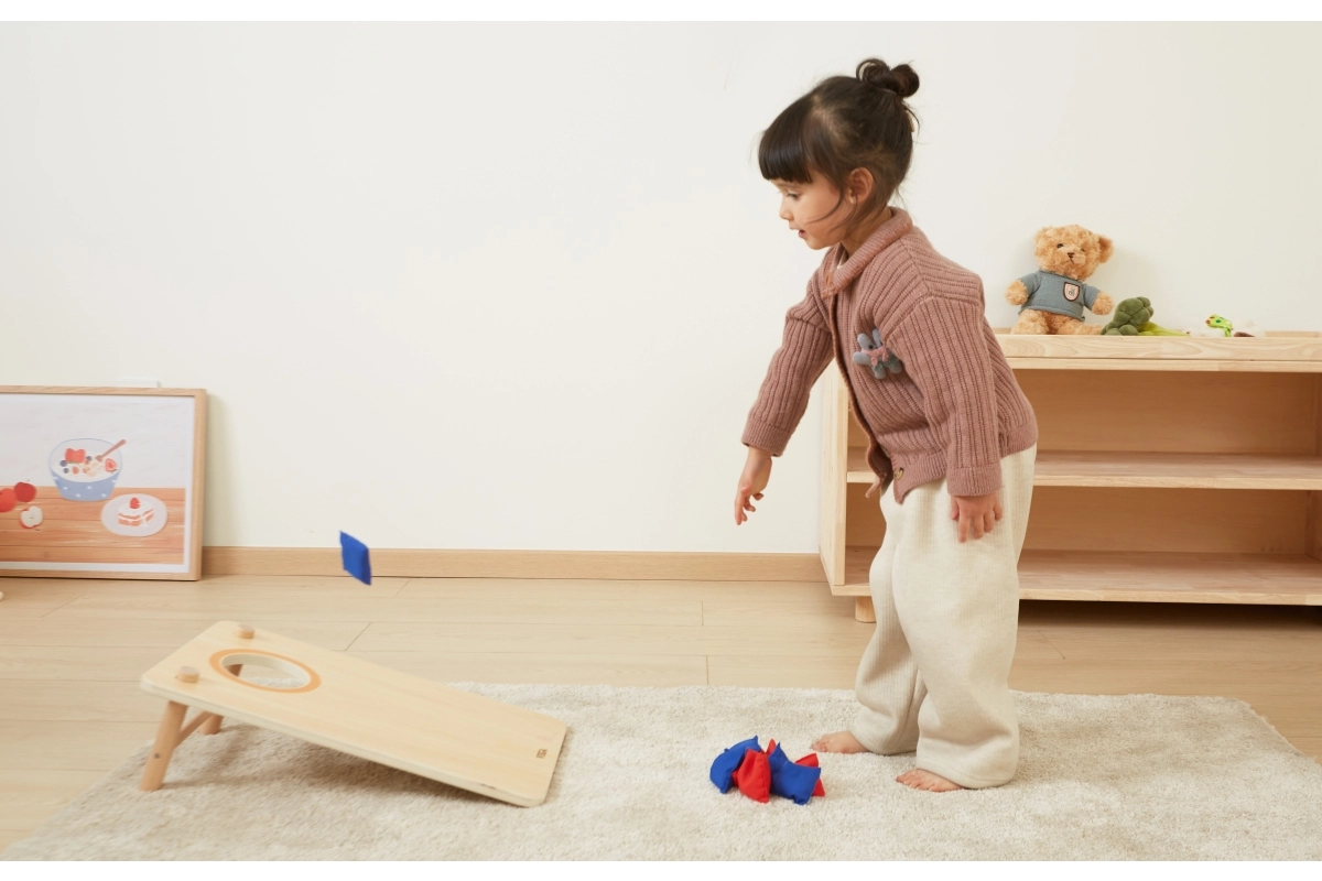 Komplektis on pehmed kangast kotikesed kahes värvitoonis (punased ja sinised), et meeskondi oleks lihtne eristada. Lapsed harjutavad visates peenmotoorikat, koordinatsiooni ja kannatlikkust, täiskasvanud hindavad lihtsaid reegleid ja tempokat mõõduvõttu.