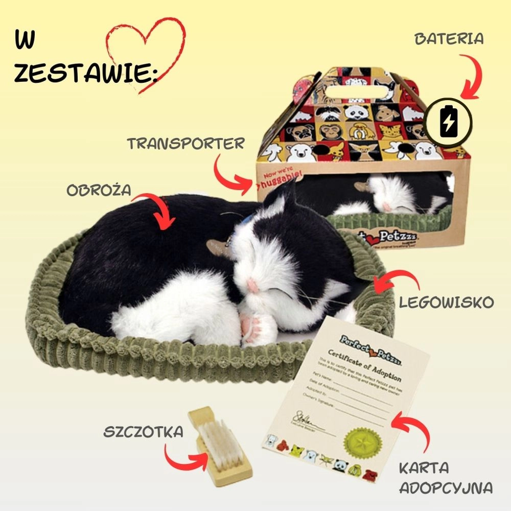 See realistlik mustvalge pehmekass magab rahulikult oma pesakeses ja „hingab“ õrnalt, luues hubase õhkkonna ja tunde, justkui oleks päris lemmikloom lähedal. Tänu detailsele teostusele, sildiga kaelarihmale ja pehmele karvkattele on see suurepärane kingitus lastele alates 3. eluaastast ning kasside austajatele.