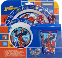 Viieosaline laste sööginõude komplekt armastatud SPIDERMAN motiiviga kaubamärgilt STOR muudab iga toidukorra toredamaks. Komplektis on taldrik, kauss, tass, teelusikas ja kahvel, see on BPA-vaba ning mikrolaineahju sobib kasutada ainult tassi (maks. 600 W 2 minuti jooksul).