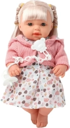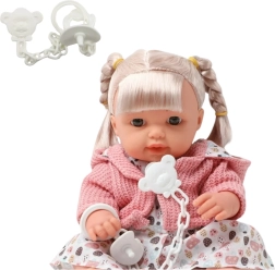 Lisavõluks on realistlikud heliefektid – nukk teeb naeru ja nuttu meenutavaid helisid, mis elavdavad ja rikastavad mängu. Nukul on värviline kleit ja pehme roosa kampsun, mida saab ära võtta, pakkudes veelgi rohkem võimalusi loovaks mänguks. Komplektis on ka kaelakeega kinnitatud lutt ripatsiga, mis laseb lapsel tunda end tõelise hooldajana. Nukk on valmistatud vastupidavast ja turvalisest plastist, on kerge, meeldiv puudutusele ning sobib suurepäraselt igapäevaseks kallistamiseks, hoolitsemiseks ja ühiseks mänguks.