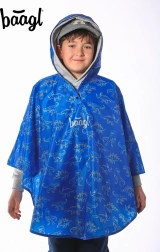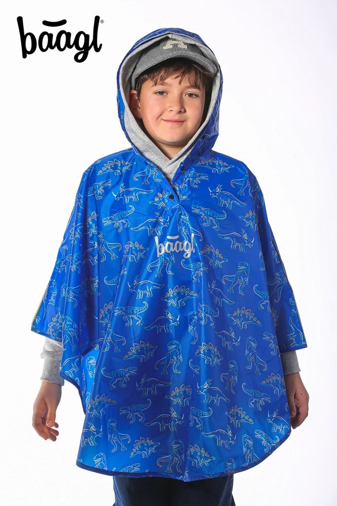 BAAGL Dino laste ponšo sinises toonis mängulise dinosauruse mustriga on ideaalne kaaslane vihmaseks ilmaks. See on valmistatud kergest, veekindlast materjalist, mis ei piira liikumist ja kaitseb usaldusväärselt läbimärgumise eest. Nokaga kapuuts hoiab vee näolt eemal ja trukid teevad selgapaneku lihtsaks.