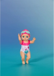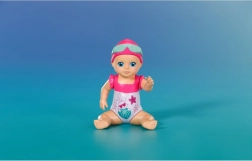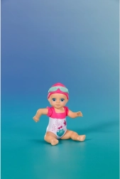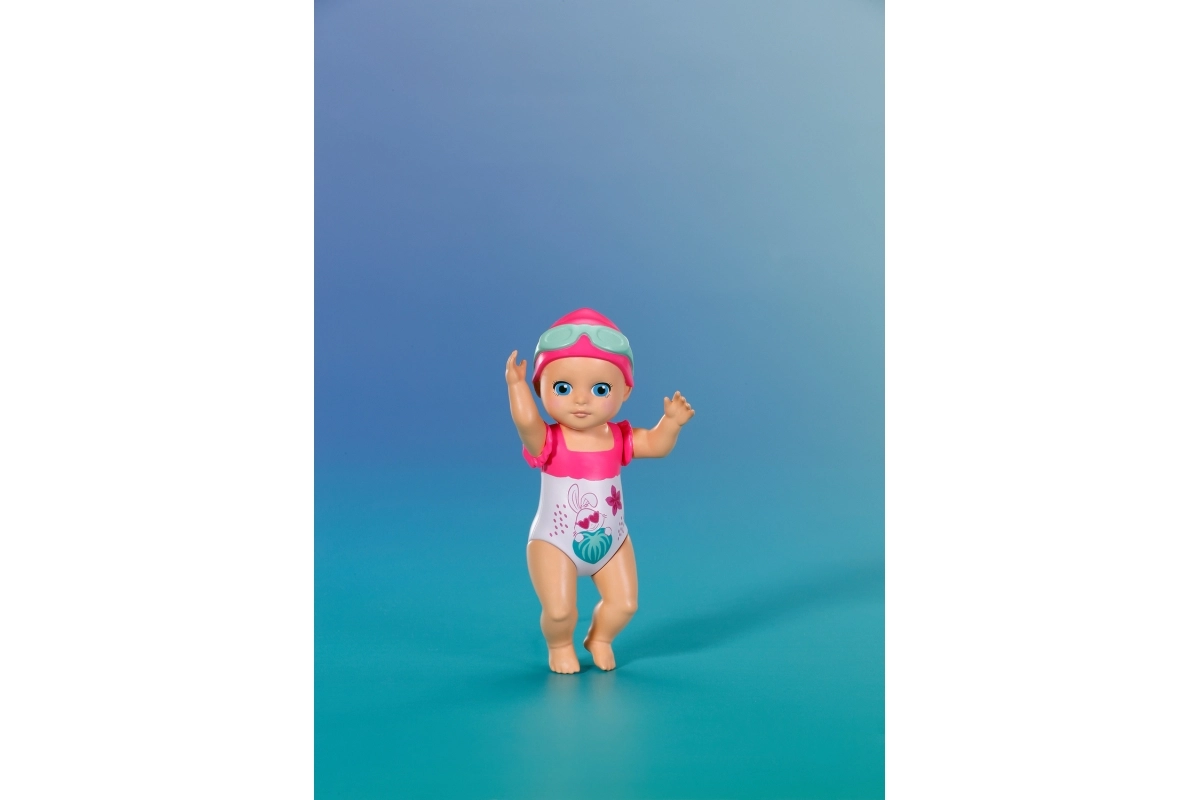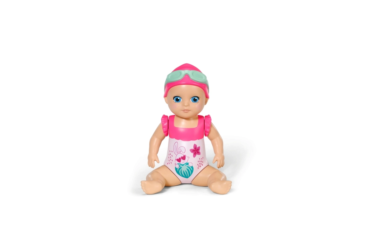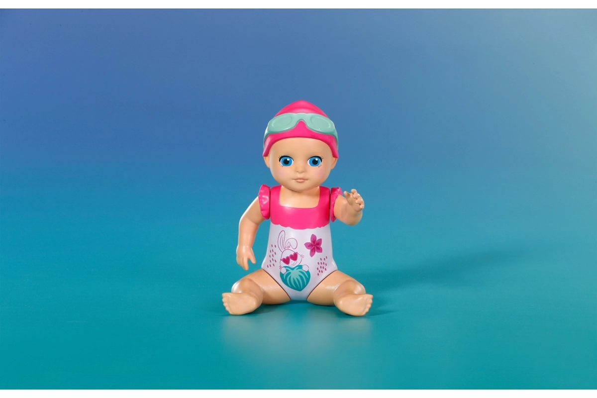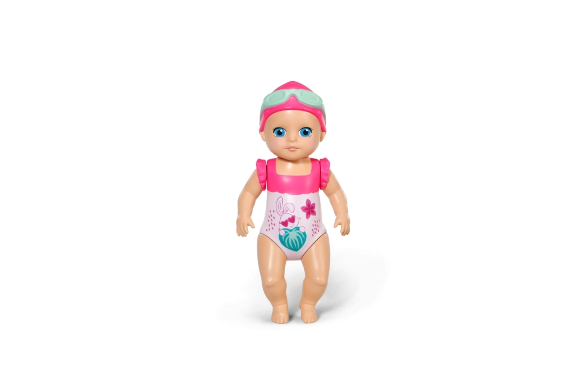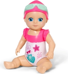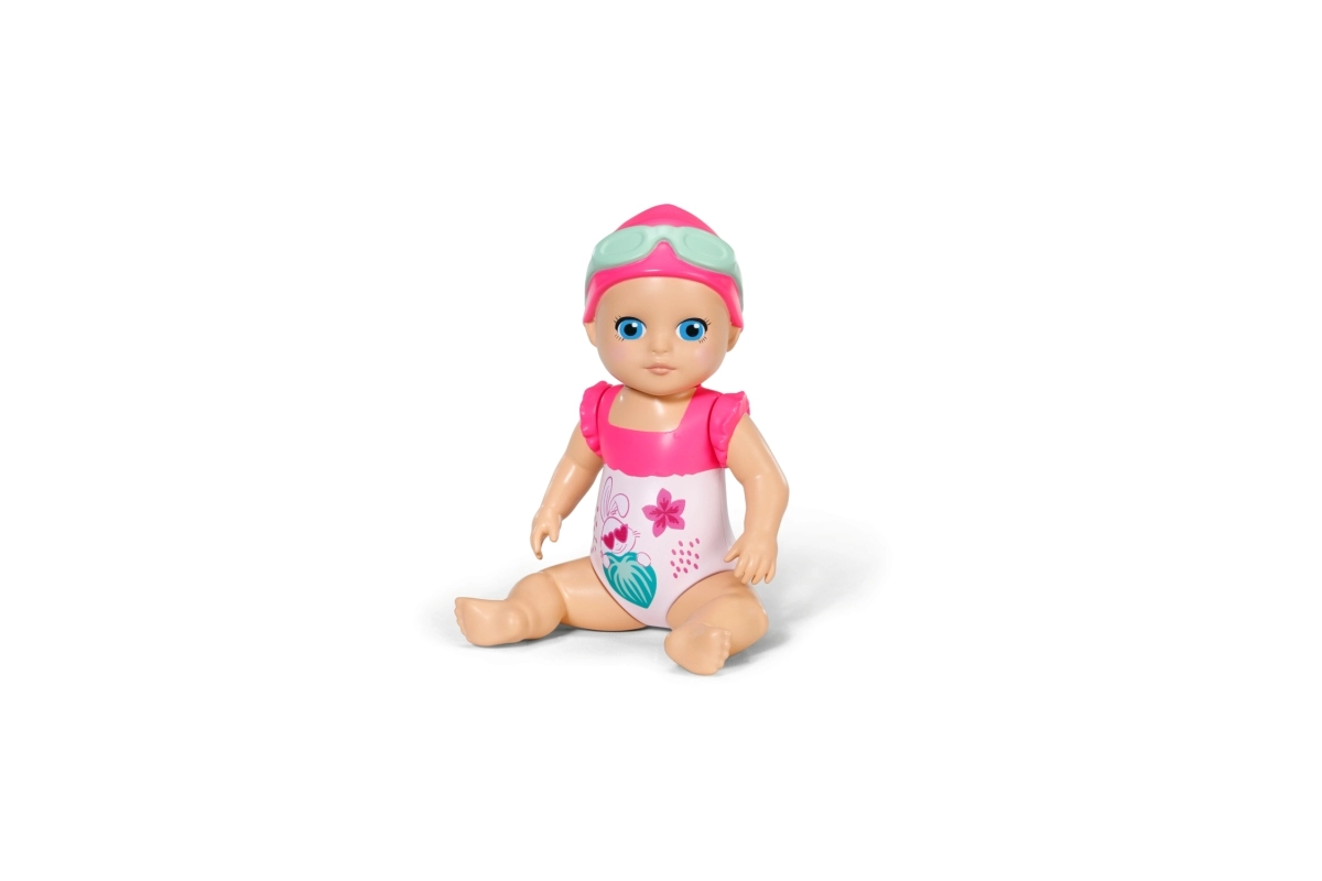 Komplektis on armas lillemustriga ujumiskostüüm, ujumismüts ja prillid. Kompaktne suurus sobib hästi väikestesse kätesse ning toetab nii iseseisvat mängu kui ka ühiseid veemomente.