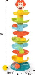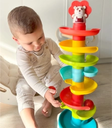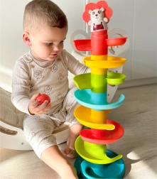 Ehitage värvikas spiraaltorn ja vaadake, kuidas kuulid tasanditelt alla veerevad. Kuuliraja osi saab väga lihtsalt kokku klõpsata, nii et lapsed saavad korduvalt ehitada, harjutades kannatlikkust ja loovust. Iga 6 värvilisest kuulist kõriseb liikumisel meeldivalt, stimuleerides meeli ja pikendades mängu.