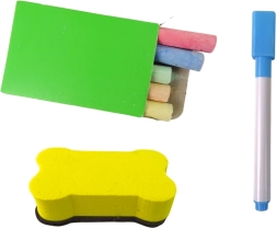 - Täiskomplekt: magnetiline marker kustutuskummiga, 5 värvi kriite, käsn