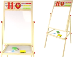 Universaalne puidust tahvel lastele alates 3. eluaastast ühendab magnetilise valge pinna ja klassikalise kriiditahvli. Stabiilne konstruktsioon koos praktilise riiuliga tarvikutele, komplektis on magnetiline marker kustutuskummiga, värvilised kriidid ja käsn. Suurepärane abivahend tähtede õppimiseks, arvutamiseks ja loovaks joonistamiseks.