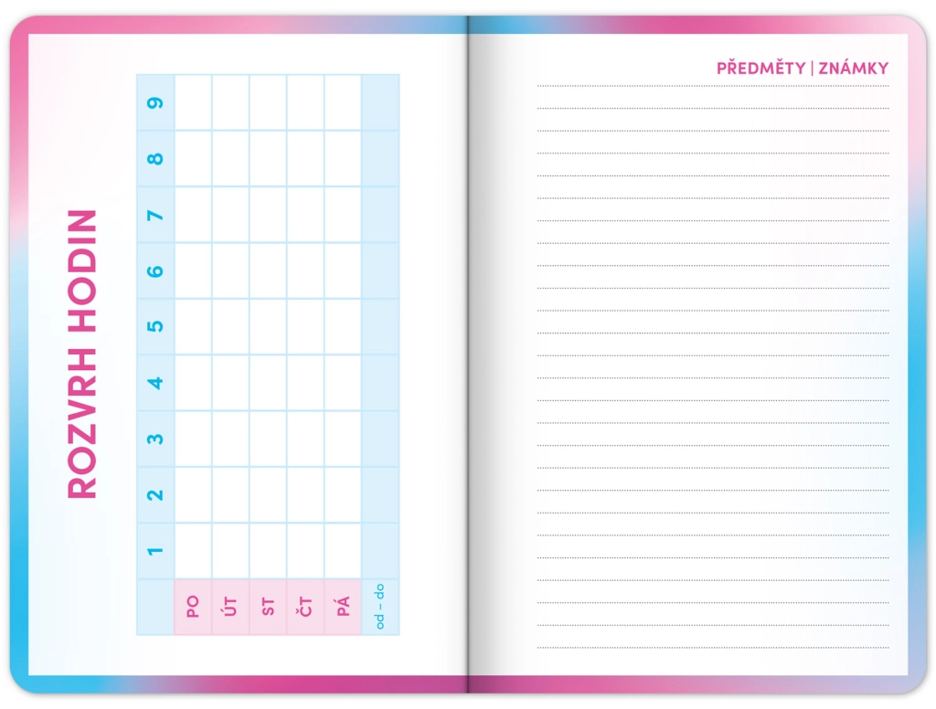 - Tunniplaani lehed ja ruum märkmeteks, ideaalne ülesannete ja oluliste kuupäevade kirja panemiseks.