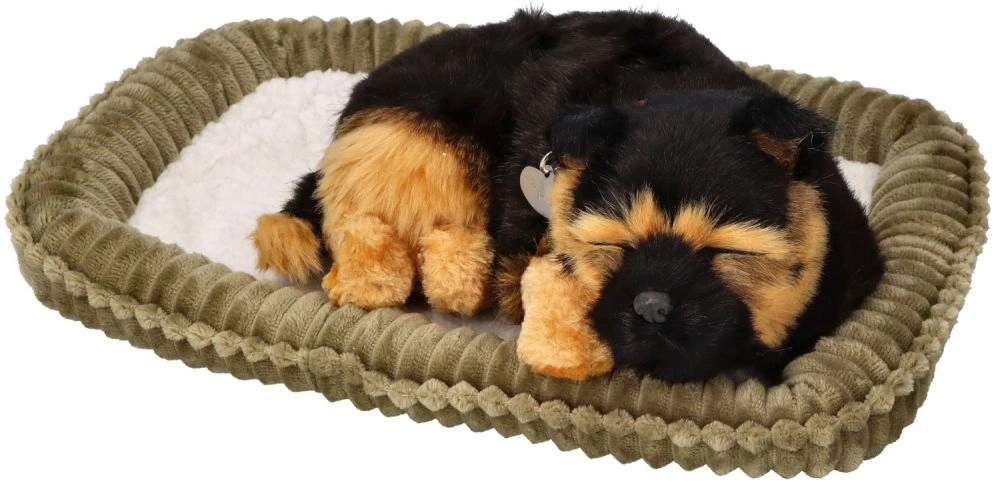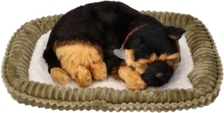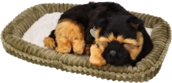 Too endale või lapsele rahustav kaaslane: see saksa lambakoera kutsikas „hingab“ õrnalt ja puhkab rahulolevalt oma pehmel pesal. Realistlikud detailid, kontrastne must-pruun karv ja armas magamisasend teevad sellest ideaalse kingituse koerasõpradele.