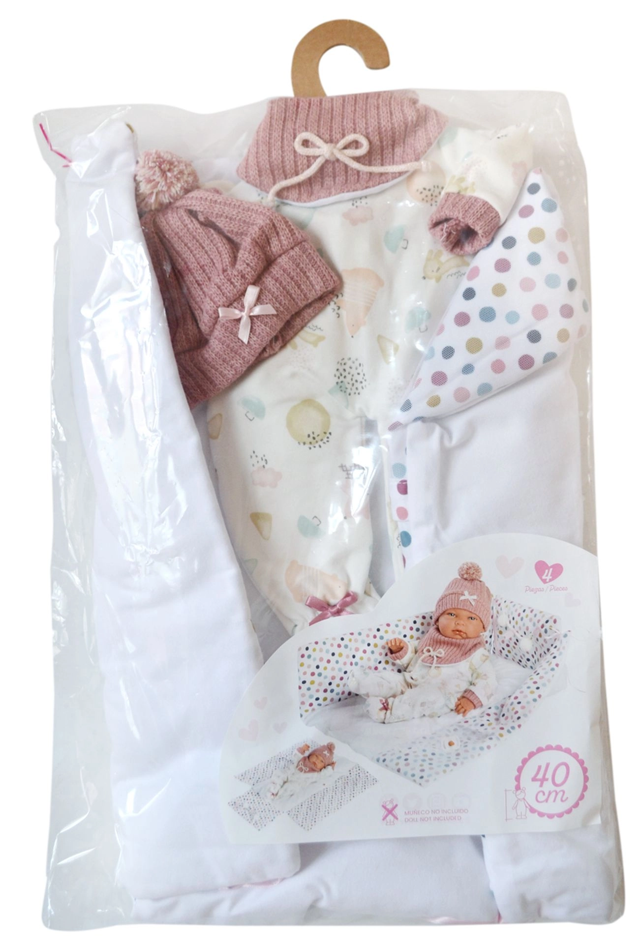 Pakendatud praktilisse kileümbrisesse ja varustatud plastmassist riidepuuga, on see komplekt ideaalne lastele alates 3. eluaastast. Riietekomplekt on armastuse ja täpsusega valmistatud Hispaanias, mis tagab kõrge kvaliteedi ja ohutuse igal mängukorral. Lase oma lapsel selle imelise komplektiga fantaasiamaailma sukelduda.