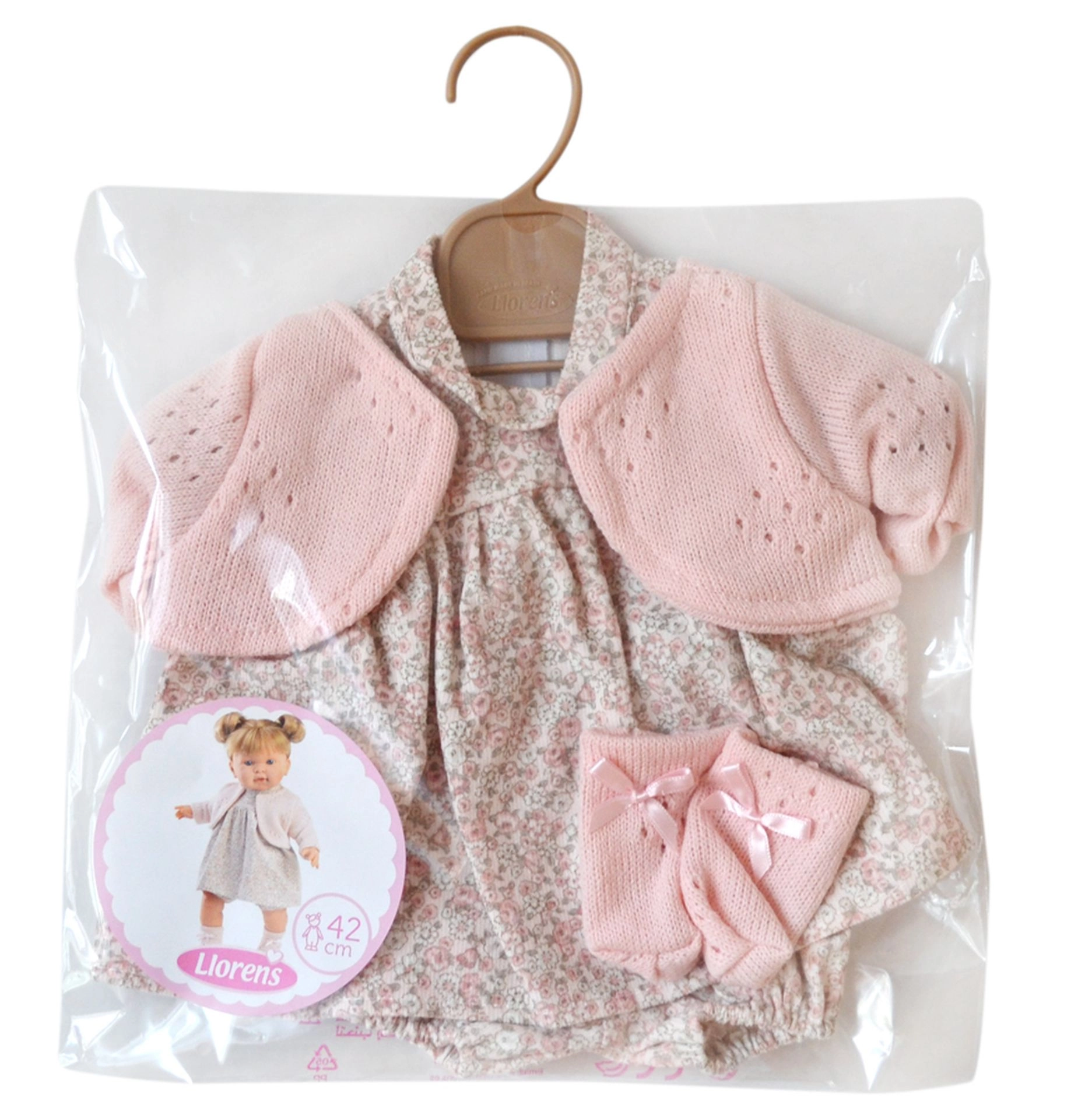 Avasta Hispaania käsitöö võlu selle kauni 42 cm nukule mõeldud riietekomplektiga. Iga ese on loodud detailidele tähelepanu pöörates, mis tagab kvaliteedi ja stiili. Komplektis on neli rõivaeset, mis võimaldavad lapsel loominguliselt mängida ja meeleolu järgi komplekte kombineerida. Tänu praktilisele kilepakendile ja plastikust riidepuule saab riided hõlpsalt hoiustada ja hoida ideaalses seisukorras.