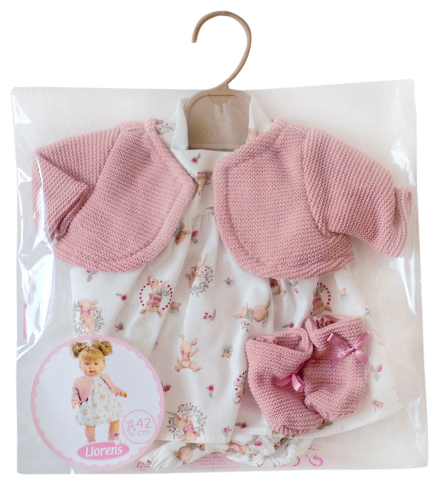 Stiilne Llorensi nuku riietus suurusele 42 cm toob mängu rõõmu ja originaalsust. Käsitsi valmistatud Hispaanias, see komplekt on ideaalne lastele alates 3. eluaastast.