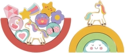 Kõik klotsid on valmistatud FSC-sertifikaadiga puidust, mis tagab materjalide jätkusuutliku päritolu. Mänguasi mitte ainult ei paku lõbu, vaid arendab ka peenmotoorikat, aidates väikestel kätel õppida erinevaid kujundeid kokku seadma.
