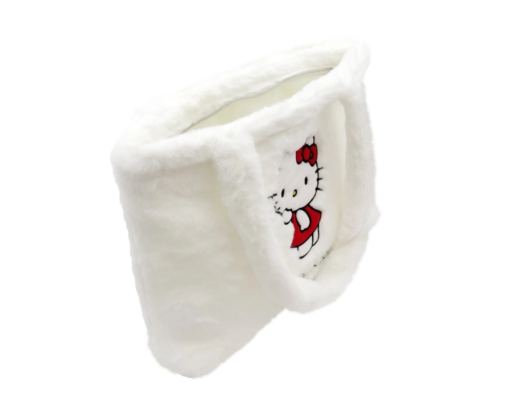 Suur plushkott Hello Kitty on valmistatud kvaliteetsetest materjalidest pehmuse ja vastupidavuse tagamiseks, ideaalne raamatute, pudelite ja hügieenitarvete kandmiseks.