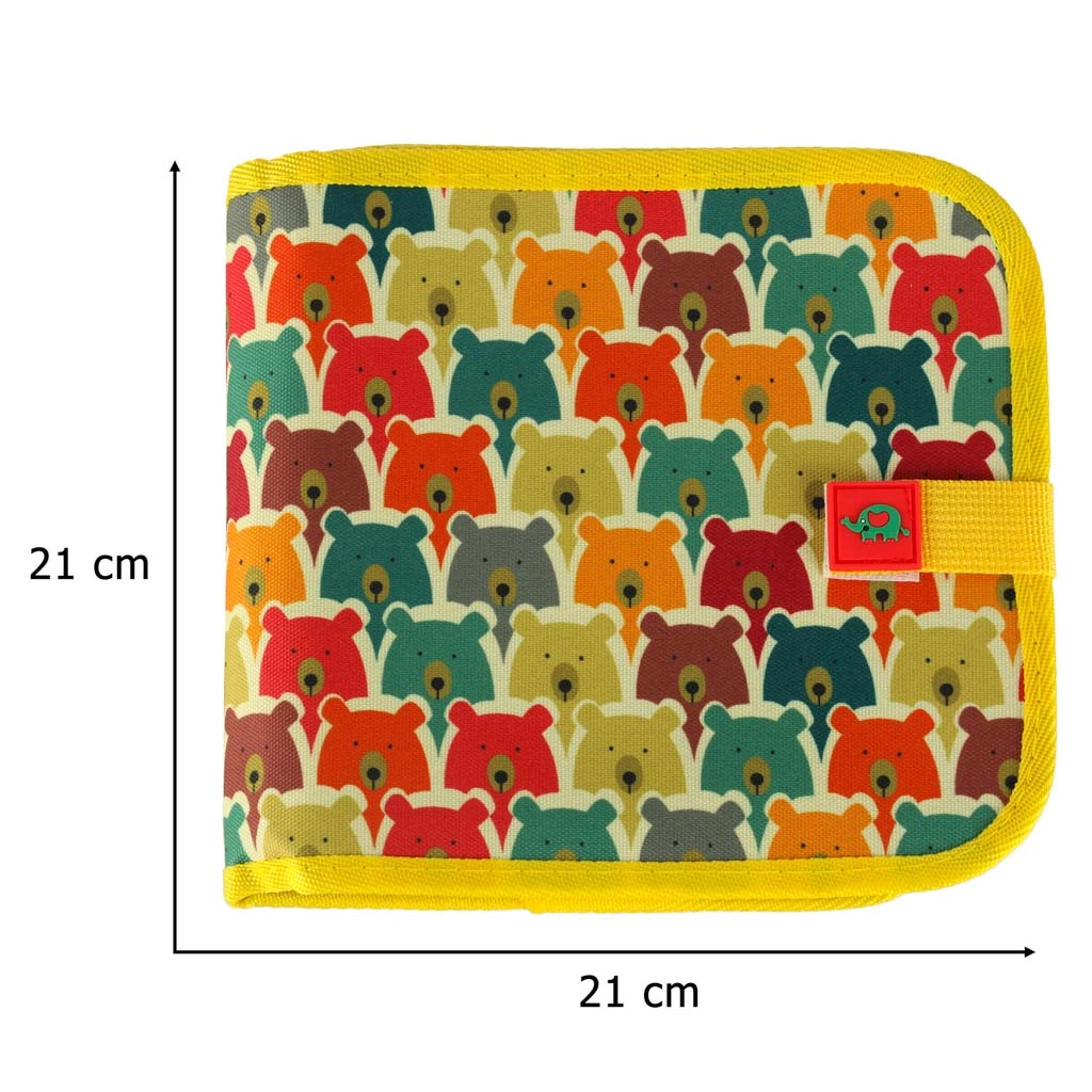 Tänu veehülgavale tekstiilist kaanele rõõmsa karumustriga ja krõpskinnitusele on raamat vastupidav, kompaktne ja püsib kotis kindlalt suletuna. Toetab tähtede ja numbrite õppimist ning vaba kreatiivset joonistamist, arendades kujutlusvõimet ja peenmotoorikat.